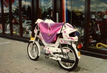 In may 1988 i contacted the importer of Puch Maxi in Holland and we had a few talks. I advised them from that moment on about designs and color settings until 1992. This was the first work of art: The Puch Rider Macho Limited Edition. Only 500 were made and you could buy it with a jacket and a helmet in the same design.