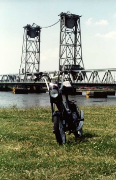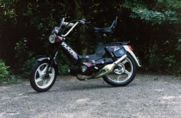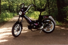This was the end product: the Puch Radical and it costed also $1350. Too expensive and nobody recognized it anymore. I put on a sterroll, some extra stickers, a chrome exhaust pipe and trial sideskirts. Only the engine remembered about the good old days.....